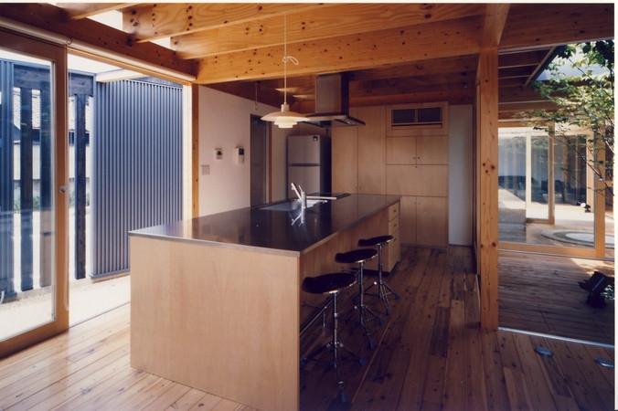 子供部屋、リビング、キッチン、書斎ユニットがこのコートを取り巻き、内部・外部の空間を連続させながら生活できるようにした。