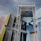 オリエンテーション・ウォール以外は、形態・機能構造とも固定したくはなかった。構造もそのひとつで、壁であるが、ラーメン構造のような様相を与え、それを裏切るように柱をずらした。壁によって4つに区画されたファサードでは、それぞれ異なった表現を試みた。最後に取りつけられ展望台は、星を見るという用途よりも、失われた海に対して開き、海へのノスタルジーの表現とした。